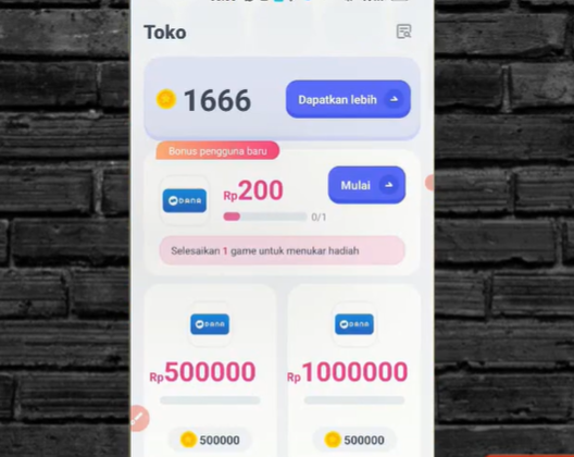 Untuk pemain baru, aplikasi menawarkan penarikan kecil sebesar Rp200. Syaratnya hanya satu, yaitu menyelesaikan satu misi game sesuai instruksi. Nominal kecil ini biasanya bisa masuk setelah beberapa waktu, dan ini digunakan sebagai bukti awal bahwa aplikasi tampak membayar.