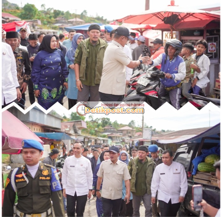 Bupati Jon Firman Pandu menyusuri setiap sudut pasar dan berdialog langsung dengan para pedagang, serta warga yang beraktivitas di sekitar lokasi.