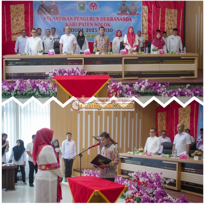 DETIKPOST.COM__Arosuka Solok..///..Bupati Solok Melantik Pengurus Dekranasda Kabupaten Solok Periode 2025 – 2030. Momentum acara pelantikan tersebut berlangsung penuh damai berjalan hikmat pada Rabu, (25/06/2025) bertempat di Ruang Sekda Kabupaten Solok.