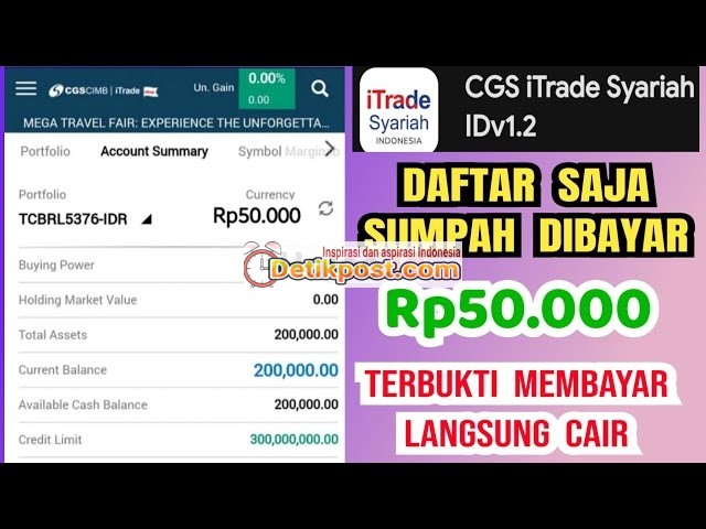 Mencari cara mudah untuk dapatkan uang gratis? Event terbaru dari aplikasi CGS Syariah bisa jadi solusinya! Dengan membuka rekening saham di aplikasi ini, pengguna berkesempatan mendapatkan reward saldo RDN sebesar Rp50.000 tanpa modal tambahan.