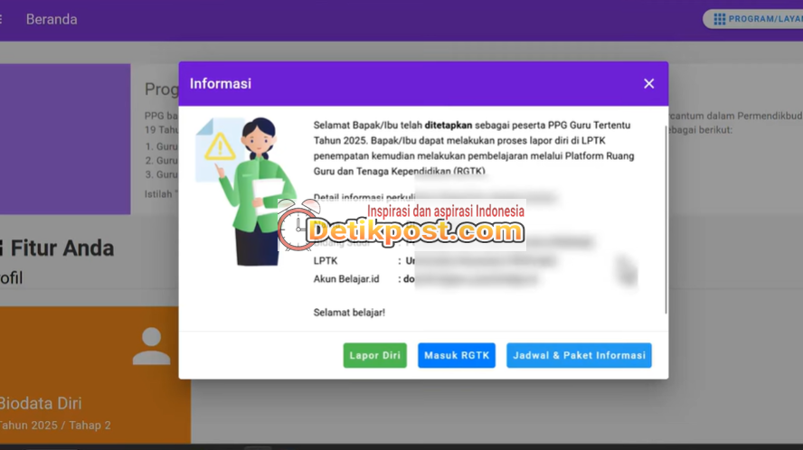 Di halaman LPTK akan tersedia informasi lengkap dan tautan khusus untuk lapor diri Tahap 2
