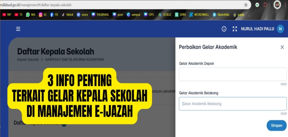 Masalah ini cukup penting karena gelar akademik kepala sekolah sering kali menjadi bagian dari keabsahan dokumen resmi, termasuk pada lembar ijazah dan surat keputusan (SK). Maka dari itu, penting untuk memahami bagaimana cara menambahkan gelar tersebut secara tepat di dalam sistem E-Ijazah.