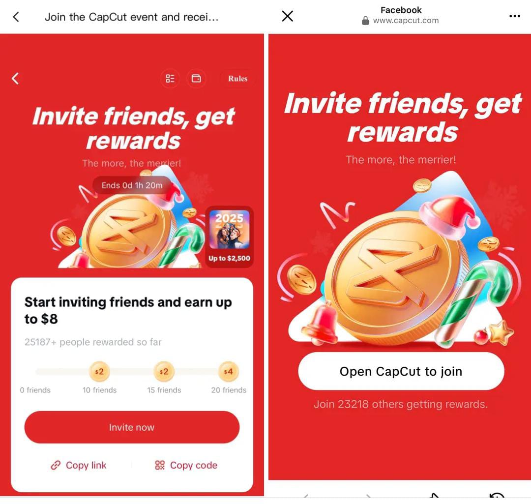 CapCut dikenal sebagai aplikasi editor video yang populer dan banyak digunakan kreator konten. Untuk meningkatkan jumlah pengguna aktif dan loyalitas, CapCut rutin mengadakan program promosi berbasis undangan. Salah satu yang terbaru adalah event undang teman dengan imbalan hingga sekitar 8 dolar atau setara puluhan ribu rupiah.