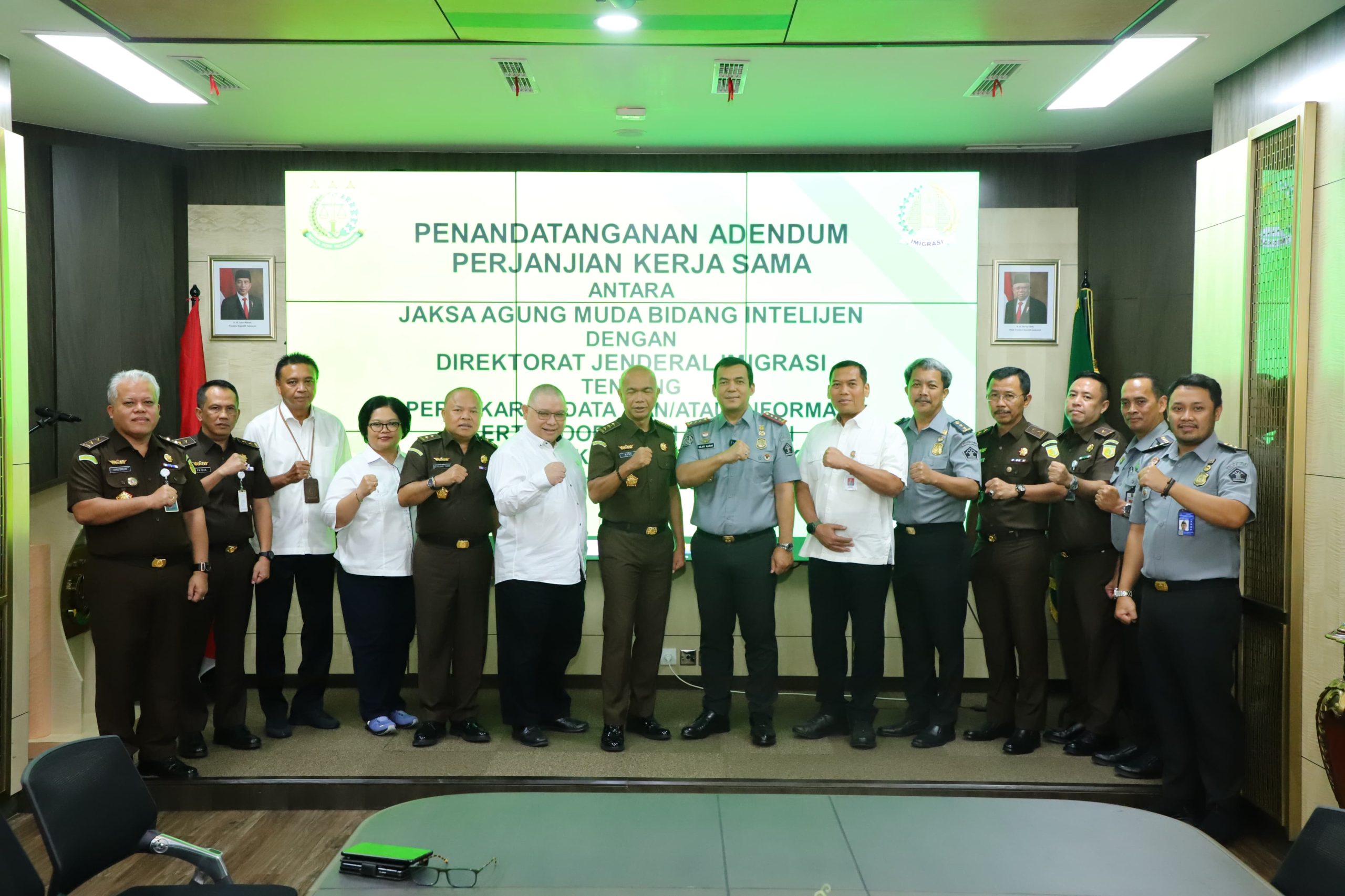“Melalui penandatanganan Adendum Perjanjian Kerja Sama ini, diharapkan sinergitas antara JAM INTEL dengan Direktorat Jenderal Imigrasi akan semakin baik, khususnya agar implementasi di lapangan kedua lembaga dapat melakukan koordinasi yang erat dan saling memberikan dukungan untuk keberhasilan kinerja,” tutur JAM-Intelijen.