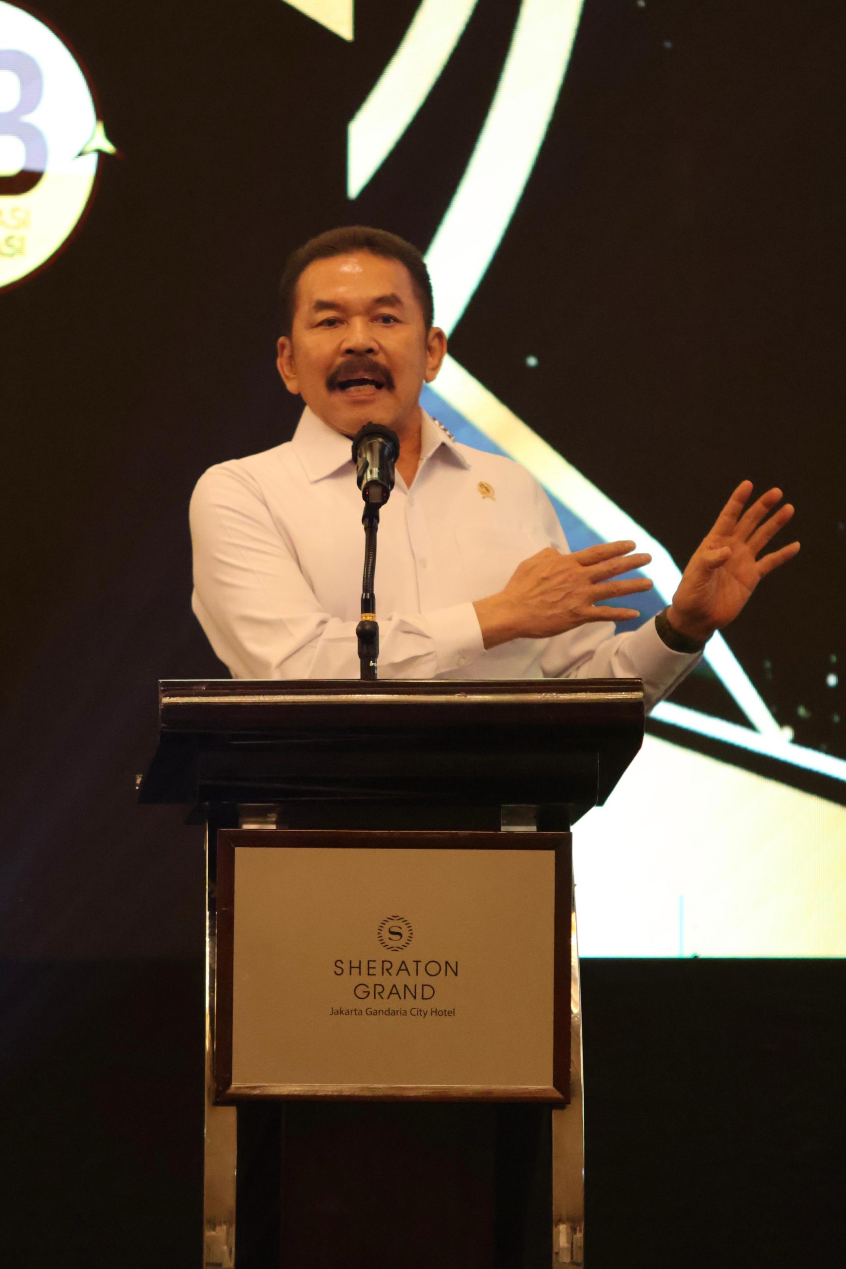 Jakarta– Kamis 14 Desember 2023 bertempat di Hotel Sheraton Grand Jakarta Gandaria City, Jaksa Agung ST Burhanuddin memberikan sambutan pada acara Apresiasi & Penganugerahan Zona Integritas Menuju WBK/WBBM Pelayanan Publik dan Kompetisi Inovasi Tahun 2023 di Lingkungan Kejaksaan RI.