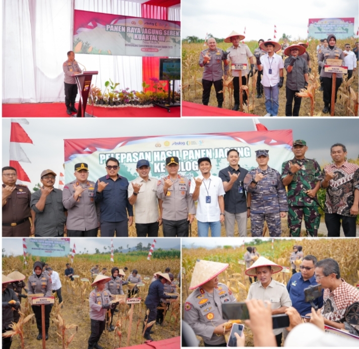 Kapolda Sumbar bersama Kapolres Solok dan Bupati Solok Hadiri Panen Raya Jagung Serentak Kuartal III di Sukarami
