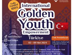 Program International Golden Youth Empowerment (IGYE) Membuka jalur Fully Funded 100% atau Gratis Tiket Pesawat PP ke Turkiye untuk mengikuti acara Conference International berfokus kan pendidikan,inovasi,workshop dan point- 17 Sustainable Development Goals.