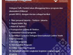 Mensupport biaya tiket gratis atau kita membuka jalur fully funded yang biasa diketahui dengan program gratis ke Turki, dengan biaya program dengan benefit seperti hotel transportasi biaya program serta mengunjungi beberapa universitas konferensi internasional dengan adanya, event-event pendidikan FGD atau fokus grup discussion serta global networking yang meningkatkan public speaking tentunya.
