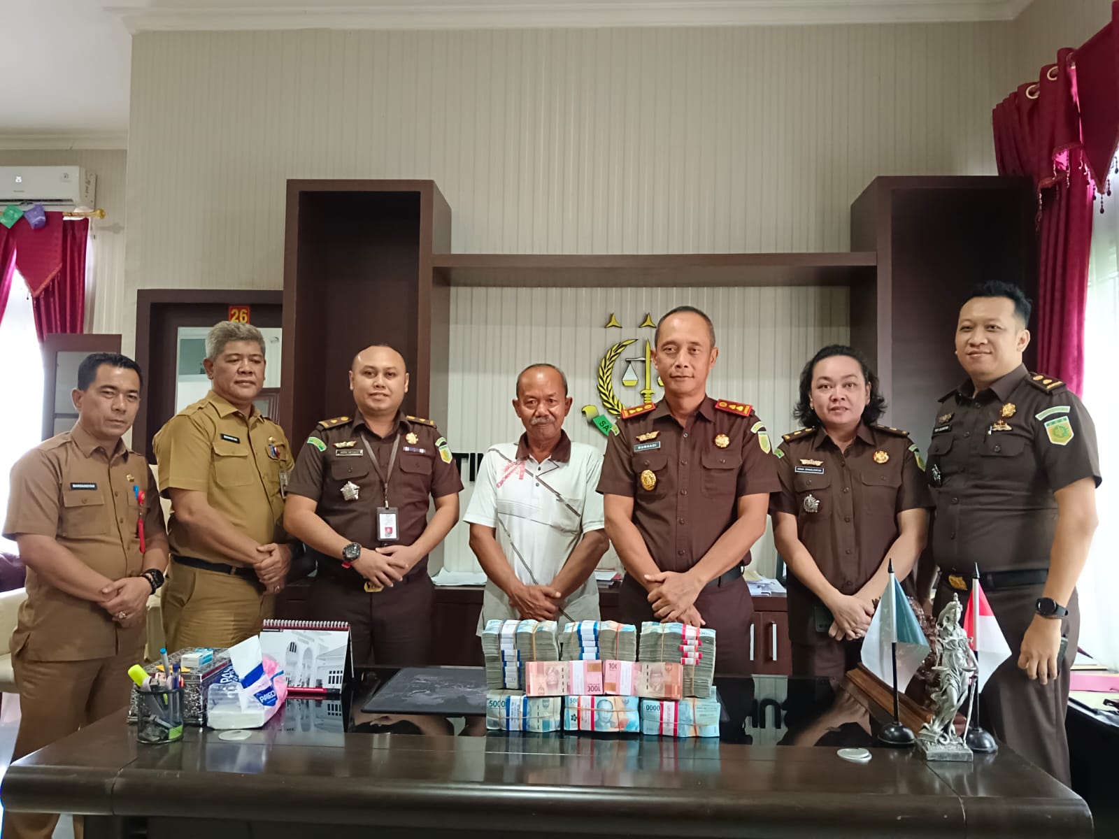 Adapun besaran Keuangan Negara yang dikembalikan tersebut sebesar Rp. 320.000.000,- (tiga ratus dua puluh juta rupiah) dan uang tersebut diserahkan langsung oleh Sdr. Yuhepri, S.Sos kepada Kepala Kejaksaan Negeri Kuantan Singingi Nurhadi Puspandoyo, S.H., M.H dengan didampingi oleh Kepala Seksi Intelijen Rozi Juliantono, S.H, Kepala Seksi Tindak Pidana Khusus Andre Antonius, S.H., M.H dan Kepala Seksi Pengelolaan Barang Bukti dan Barang Rampasan Mona Siti H Simanjuntak, S.H., M.H serta disaksikan oleh Kepala Dinas Sosial dan Pemberdayaan Masyarakat Desa Bapak Erdiansyah, S.Sos., M.Si dan Kepala Dinas Koperasi, UKM, Perdagangan dan Perindustrian Mardansyah, S.Sos., M.M.