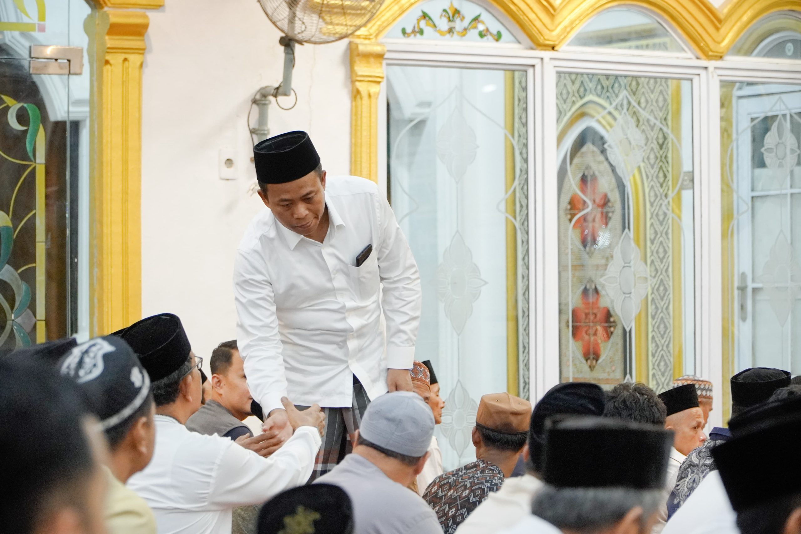DetikPost.com Rokan Hilir- Wakil Bupati Rohil H. Sulaiman melaksanakan sholat Isya dan sholat sunat tarawih berjamaah pertama, di Masjid Raya Al-iklas Bagansiapiapi, Senin 11 Maret 2024.