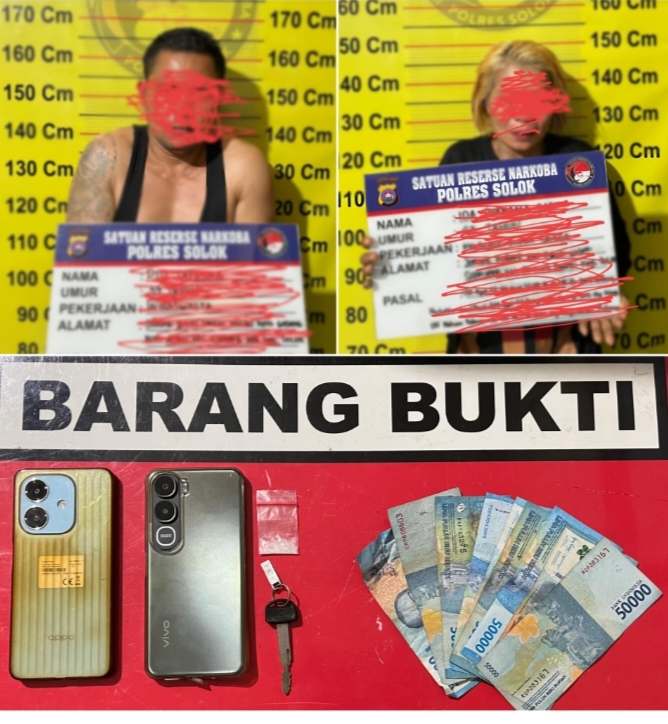 Kedua tersangka diamankan Tim Satresnarkoba Polres Solok sekitar pukul 16.15 Wib sore. Pelaku merupakan satu orang wanita dan satu orang pria dewasa, yang diduga memakai dan mengedarkan narkotika golongan 1 jenis Sabu.