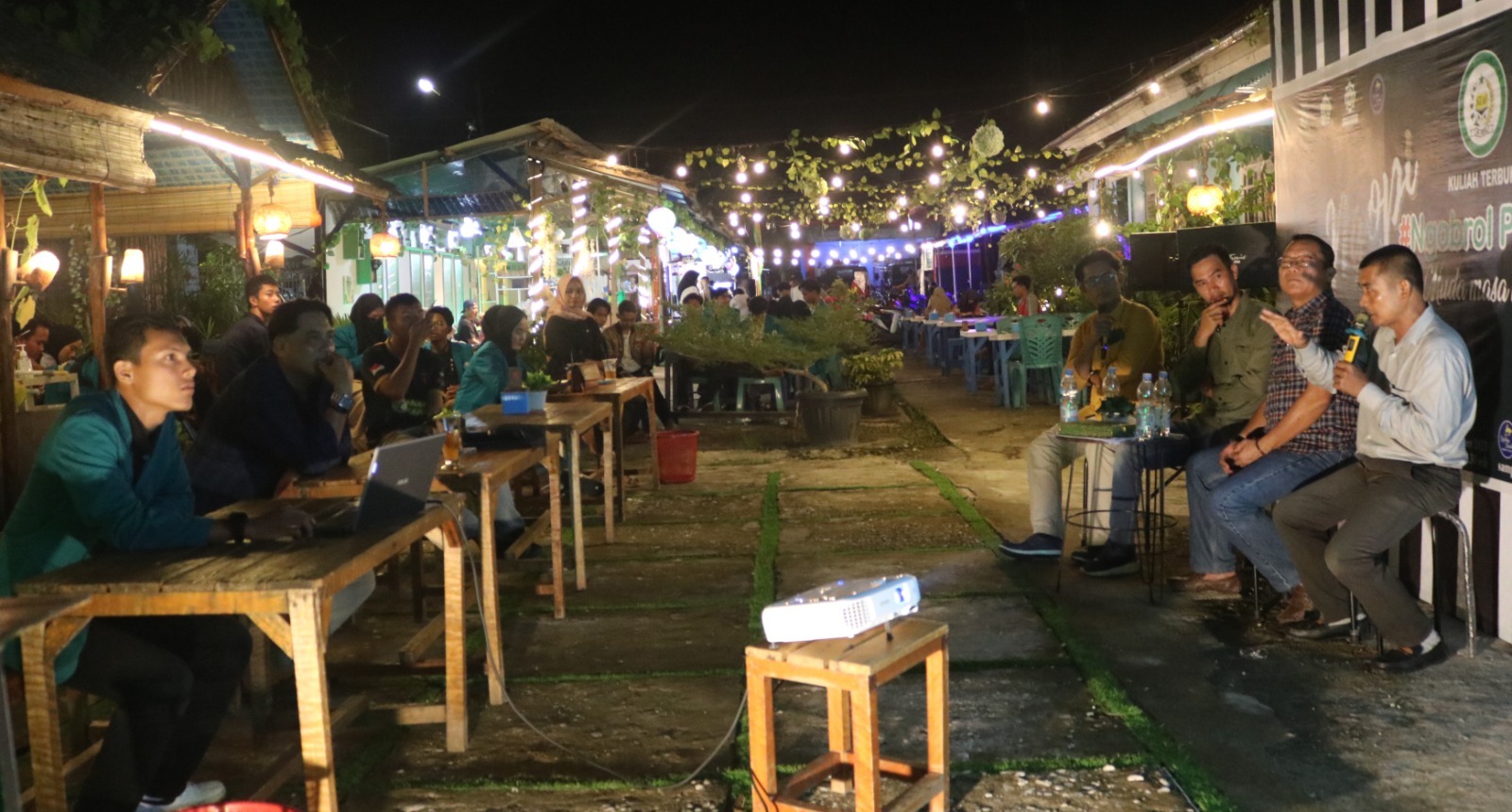 “Mahasiswa yang dianggap sebagai agen perubahan, harus melek, harus paham, harus mengerti apa yang akan terjadi dengan perubahan-perubahan, dan sebulan yang lalu kita sudah mulai diskusi-diskusi di kampus, dan malam hari ini kita mulai, dengan menghadirkan narasumber-narasumber yang kompeten dibidangnya,” pungkasnya.