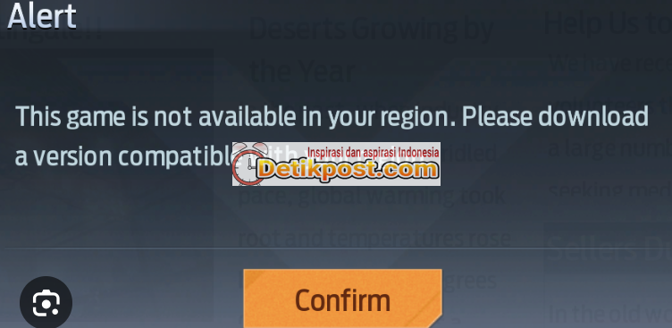 Beberapa alasan umum mengapa game mungkin tidak tersedia di wilayah Anda termasuk perbedaan hukum, peraturan, atau kebijakan pasar di berbagai negara. Nah jadi mau tidak mau kita harus mengikuti kebijakan pengembang dan menunggu rilisan terbaru sesuai dengan wilayah kita di indonesia.