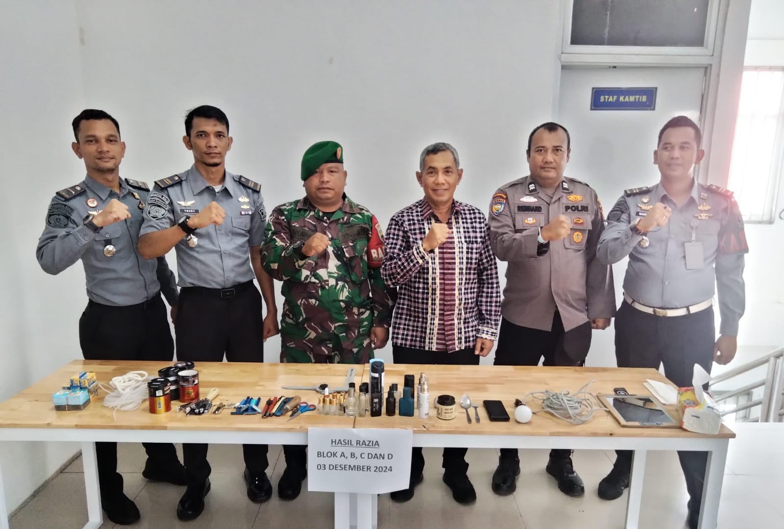 Pekanbaru – Dalam rangka menindaklanjuti Arahan 13 (tiga belas) Program Akselerasi Menteri Imigrasi dan Pemasyarakatan khususnya pada poin 1 (satu) yakni Memberantas Peredaran Narkoba dan Pelaku Penipuan dengan berbagai modus di Lapas dan Rutan, Lembaga Pemasyarakatan (Lapas) Narkotika Kelas IIB Rumbai bersinergi dengan TNI dan Polri sebagai Aparat Penegak Hukum (APH) berturut-turut menggelar razia selama sebulan pada kamar hunian warga binaan, Selasa (03/12/2024).