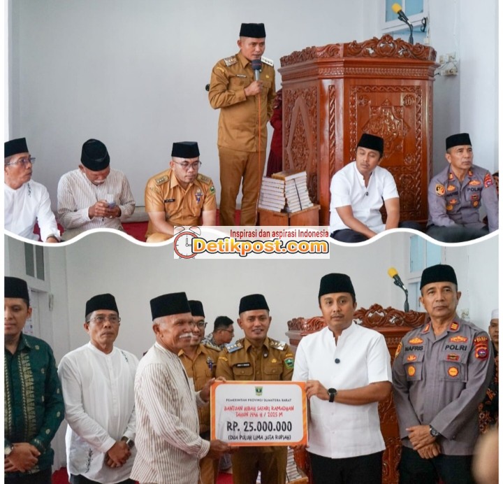 Arosuka Solok_Detikpost.com…Wakil Gubernur Sumbar Vasco Ruseimi Serahkan Bantuan di Masjid Babussalam Jorong Subarang Nagari Koto Baru, Senin / 10 Maret 2025, bagi Masjid Babussalam Nagari Koto Baru Turut Hadir Forkopimda, Anggota DPRD Prov Sumbar dan Kabupaten Solok, Kepala Baznas Prov Sumbar dan Kabupaten Solok, Kepala OPD Pemprov Sumbar, Staf Ahli Bupati Solok, Kepala OPD Kab. Solok, Pimpinan BUMN dan BUMD di Kabupaten Solok, Camat Kubung (Acil Fasra), Walinagari se Kecamatan Kubung Ketua BPN, Ketua KAN, Tokoh Masyarakat Nagari Koto Baru.