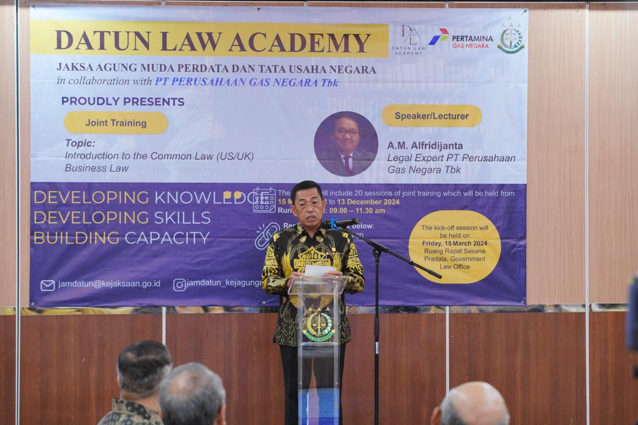 DetikPost.com Jakarta- |Jumat 15 Maret 2024 bertempat di Aula Gedung Jaksa Agung Muda Bidang Perdata dan Tata Usaha Negara (JAM DATUN), Wakil Jaksa Agung Dr. Sunarta memberikan sambutan pada acara Joint Training Jaksa Agung Muda Bidang Perdata dan Tata Usaha Negara (JAM DATUN) dengan PT Perusahaan Gas Negara Tbk.